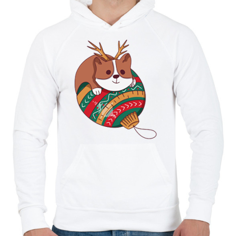 1 kép PRINTFASHION Karácsonyi corgi - Férfi kapucnis pulóver - Fehér