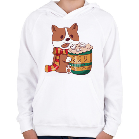1 kép PRINTFASHION Karácsonyi corgi - Gyerek kapucnis pulóver - Fehér