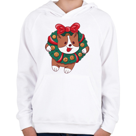 1 kép PRINTFASHION Karácsonyi corgi - Gyerek kapucnis pulóver - Fehér