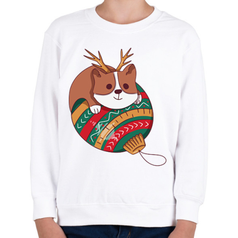 1 kép PRINTFASHION Karácsonyi corgi - Gyerek pulóver - Fehér