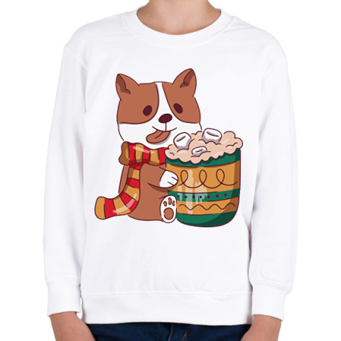 1 kép PRINTFASHION Karácsonyi corgi - Gyerek pulóver - Fehér