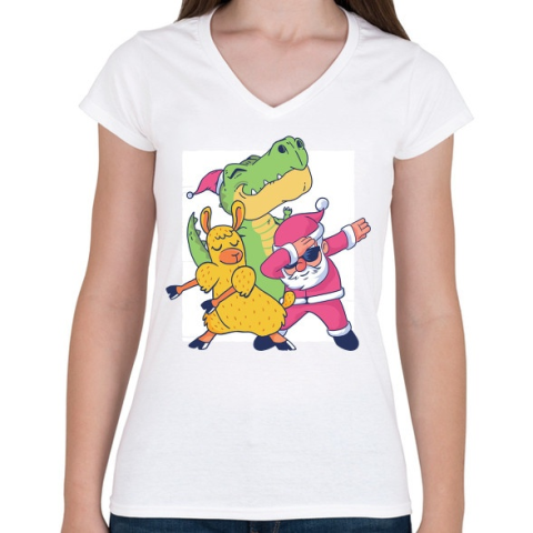 1 kép PRINTFASHION Karácsonyi csapat - Női V-nyakú póló - Fehér