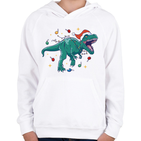 1 kép PRINTFASHION Karácsonyi dínó - Gyerek kapucnis pulóver - Fehér
