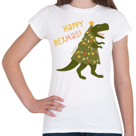 1 kép PRINTFASHION Karácsonyi dínó - Női póló - Fehér