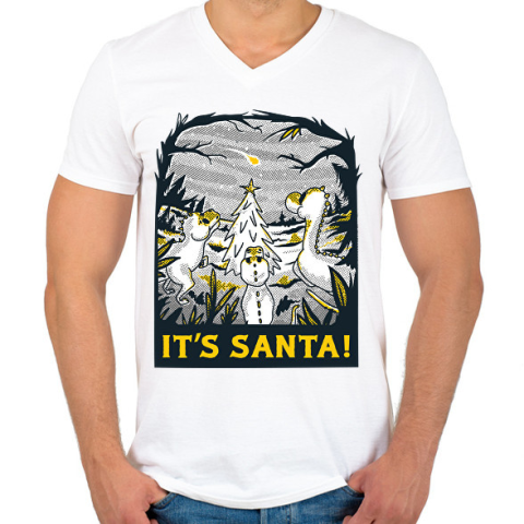 1 kép PRINTFASHION Karácsonyi dínók - Férfi V-nyakú póló - Fehér