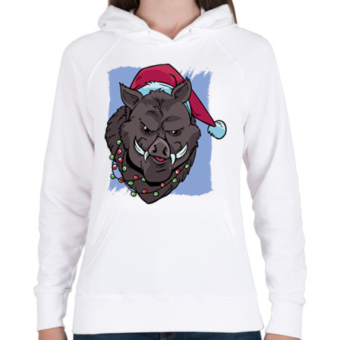 1 kép PRINTFASHION Karácsonyi disznó - Női kapucnis pulóver - Fehér