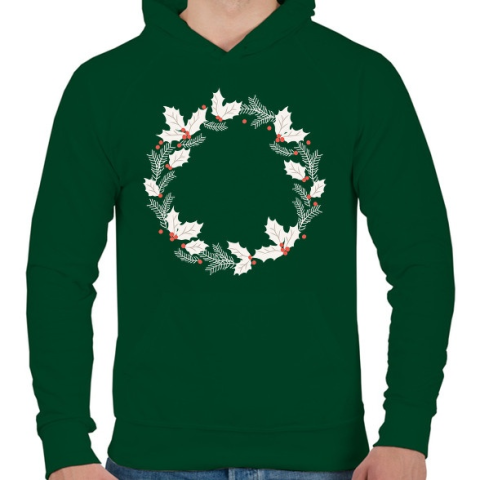 1 kép PRINTFASHION Karácsonyi fehér koszorú - Férfi kapucnis pulóver - Sötétzöld