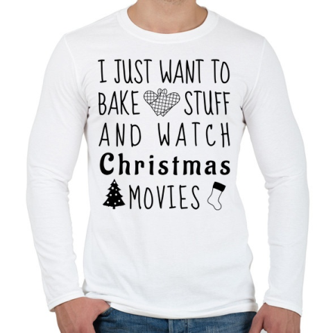 1 kép PRINTFASHION Karácsonyi filmek és sütés - Férfi hosszú ujjú póló - Fehér