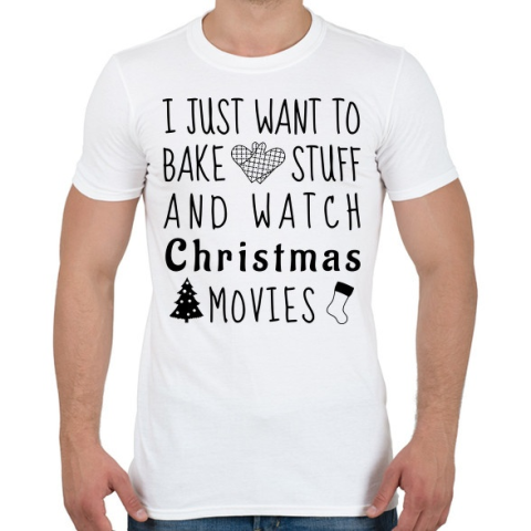 1 kép PRINTFASHION Karácsonyi filmek és sütés - Férfi póló - Fehér
