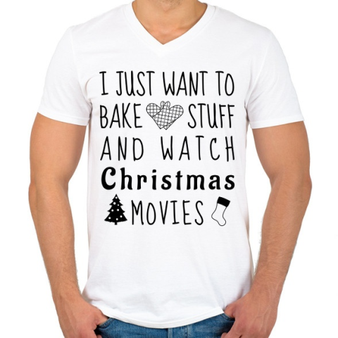 1 kép PRINTFASHION Karácsonyi filmek és sütés - Férfi V-nyakú póló - Fehér