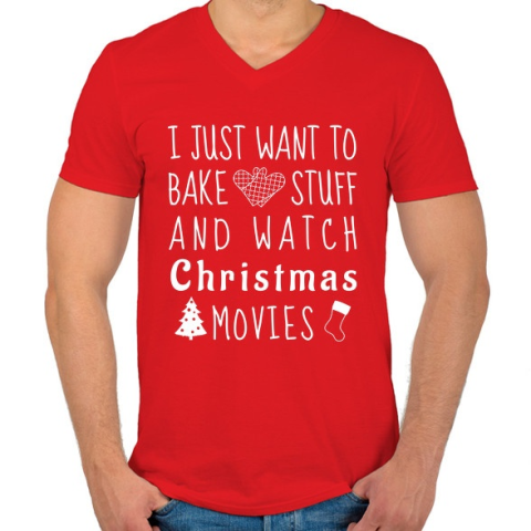 1 kép PRINTFASHION Karácsonyi filmek és sütés - Férfi V-nyakú póló - Piros