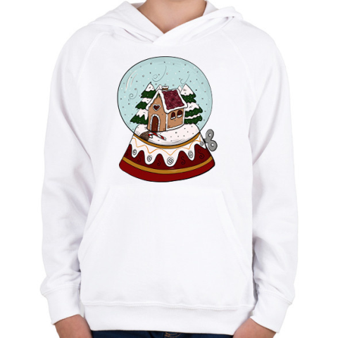 1 kép PRINTFASHION Karácsonyi hógömb - Gyerek kapucnis pulóver - Fehér