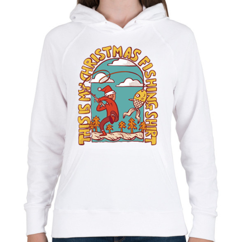 1 kép PRINTFASHION Karácsonyi horgász póló - Női kapucnis pulóver - Fehér