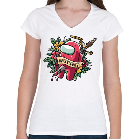 1 kép PRINTFASHION Karácsonyi impostor - among us meme - Női V-nyakú póló - Fehér