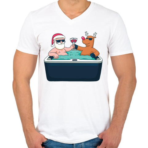 1 kép PRINTFASHION Karácsonyi jacuzzi - Férfi V-nyakú póló - Fehér