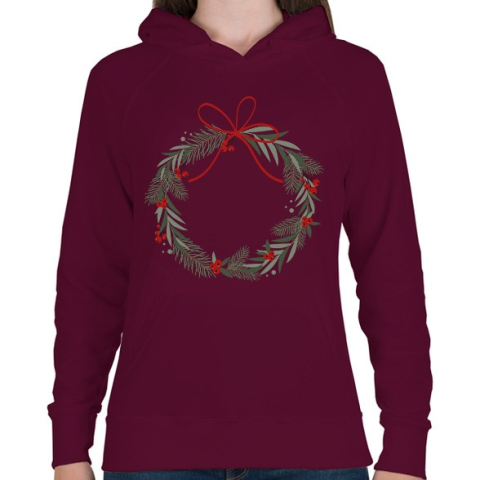 1 kép PRINTFASHION Karácsonyi koszorú piros masnival - Női kapucnis pulóver - Bordó