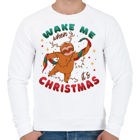 1 kép PRINTFASHION Karácsonyi lajhár - Férfi pulóver - Fehér