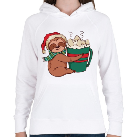 1 kép PRINTFASHION Karácsonyi lajhár - Női kapucnis pulóver - Fehér
