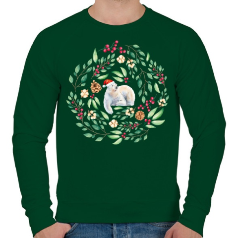 1 kép PRINTFASHION Karácsonyi maci - Férfi pulóver - Sötétzöld
