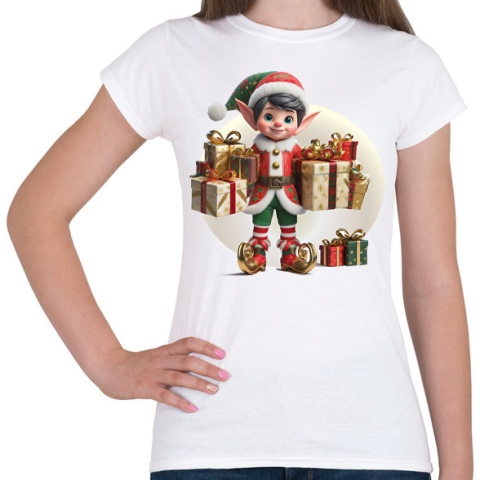 1 kép PRINTFASHION Karácsonyi manófiú - Női póló - Fehér