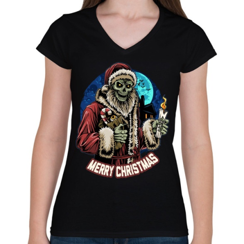 1 kép PRINTFASHION Karácsonyi mikulás zombi - Női V-nyakú póló - Fekete