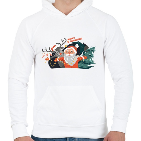 1 kép PRINTFASHION Karácsonyi minta - télapó és rénszarvas_Rajztábla 1 - Férfi kapucnis pulóver - Fehér