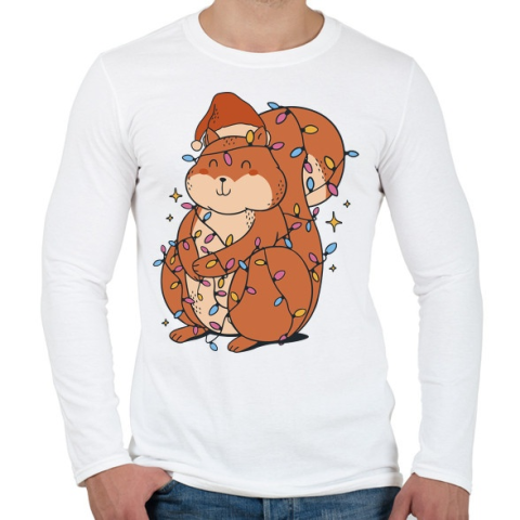 1 kép PRINTFASHION Karácsonyi mókus - Férfi hosszú ujjú póló - Fehér