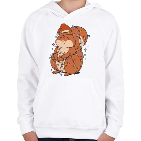 1 kép PRINTFASHION Karácsonyi mókus - Gyerek kapucnis pulóver - Fehér