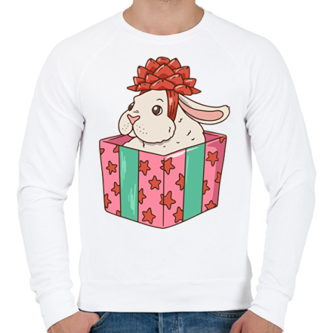 1 kép PRINTFASHION Karácsonyi nyuszi - Férfi pulóver - Fehér