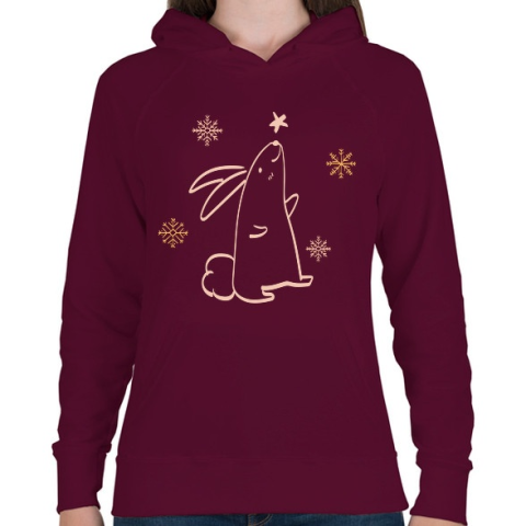 1 kép PRINTFASHION Karácsonyi nyuszi rajz - Női kapucnis pulóver - Bordó