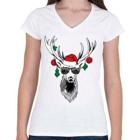 1 kép PRINTFASHION Karácsonyi party szarvas - Női V-nyakú póló - Fehér
