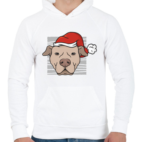 1 kép PRINTFASHION Karácsonyi pitbull - Férfi kapucnis pulóver - Fehér