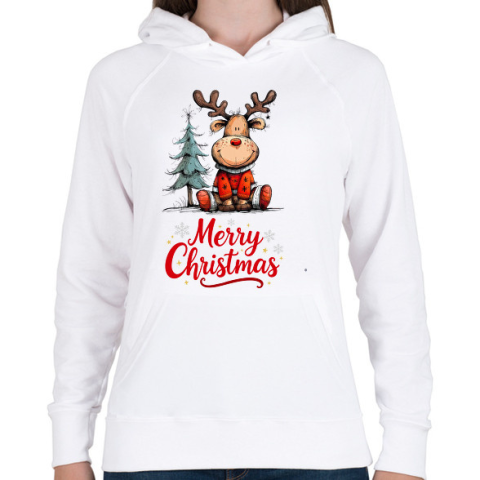 1 kép PRINTFASHION karácsonyi rénszarvas - Női kapucnis pulóver - Fehér