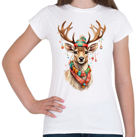 1 kép PRINTFASHION Karácsonyi rénszarvas - Női póló - Fehér