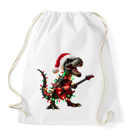 1 kép PRINTFASHION Karácsonyi rocker tirex gitárral - karácsonyi dinoszaurusz - Sportzsák, Tornazsák - Fehér