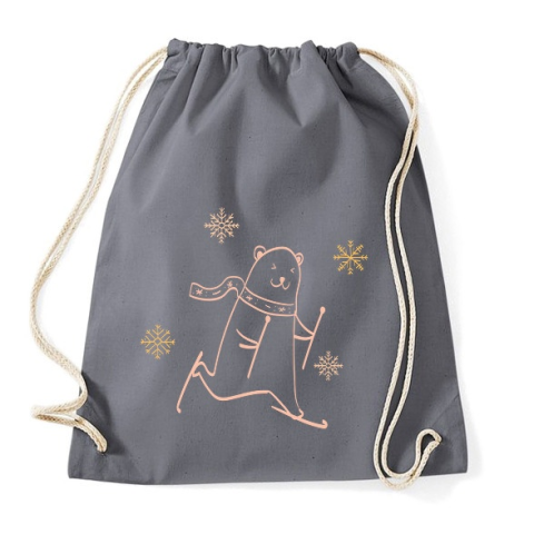 1 kép PRINTFASHION Karácsonyi síelő maci - Sportzsák, Tornazsák - Grafitszürke