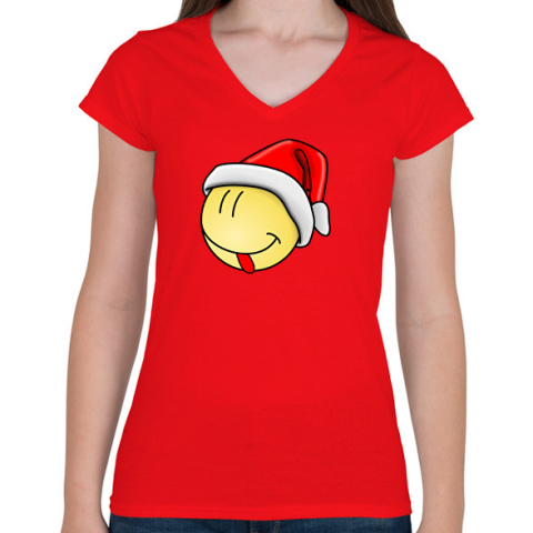 1 kép PRINTFASHION Karácsonyi smile - Női V-nyakú póló - Piros