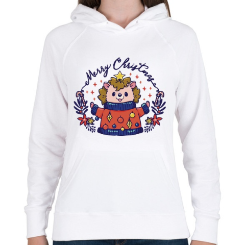 1 kép PRINTFASHION Karácsonyi süni - Női kapucnis pulóver - Fehér