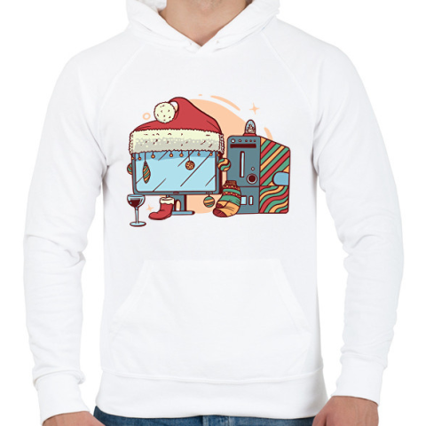 1 kép PRINTFASHION Karácsonyi számítógép - Férfi kapucnis pulóver - Fehér