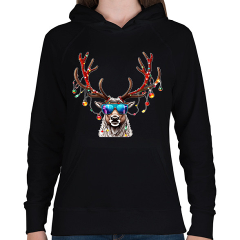 1 kép PRINTFASHION karácsonyi szarvas - Női kapucnis pulóver - Fekete