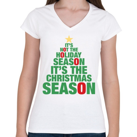 1 kép PRINTFASHION Karácsonyi szezon - Női V-nyakú póló - Fehér