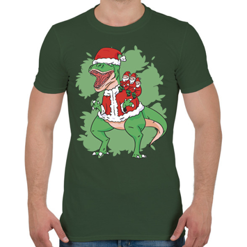 1 kép PRINTFASHION Karácsonyi T-rex - Férfi póló - Katonazöld