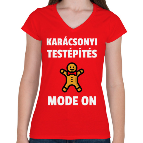 1 kép PRINTFASHION KARÁCSONYI TESTÉPÍTÉS - Női V-nyakú póló - Piros