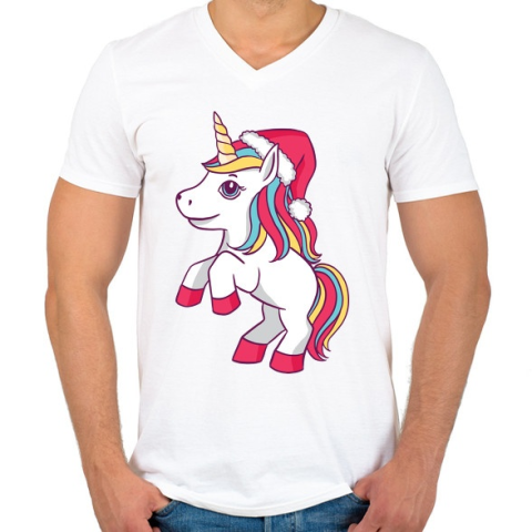 1 kép PRINTFASHION Karácsonyi unikornis - Férfi V-nyakú póló - Fehér