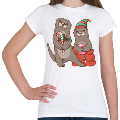 1 kép PRINTFASHION Karácsonyi vidrák - Női póló - Fehér