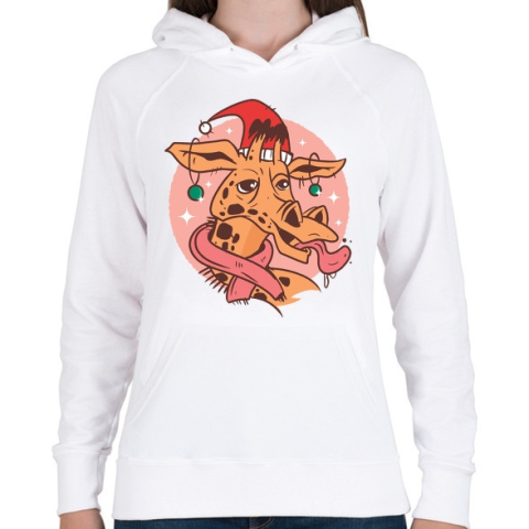 1 kép PRINTFASHION Karácsonyi zsiráf - Női kapucnis pulóver - Fehér