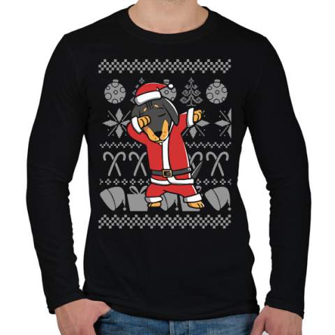 1 kép PRINTFASHION Karácsonyos tacskó - Férfi hosszú ujjú póló - Fekete