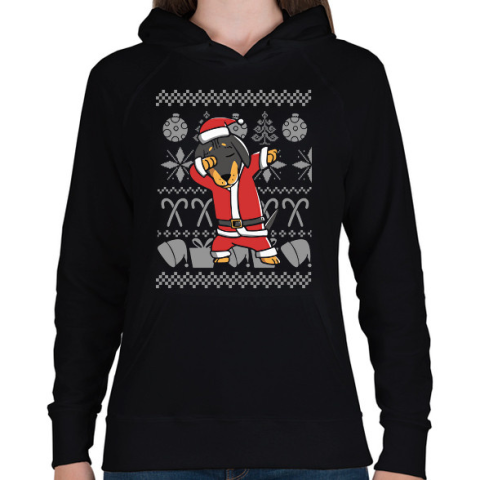 1 kép PRINTFASHION Karácsonyos tacskó - Női kapucnis pulóver - Fekete