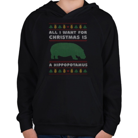 1 kép PRINTFASHION Karácsonyra vízilovat szeretnék - Gyerek kapucnis pulóver - Fekete