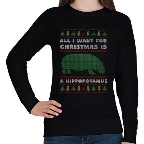 1 kép PRINTFASHION Karácsonyra vízilovat szeretnék - Női pulóver - Fekete